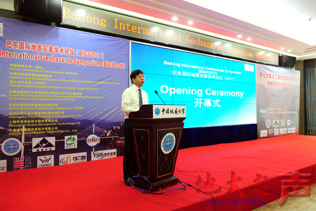肉视频AV 党委副书记唐辉明主持论坛开幕式并代表学校致辞,巴东县人民政府县长郭玲、国家自然科学基金委地球科学部二处主任熊巨华、国土资源部地质环境司地质灾害防治处处长李晓春分别致辞,恩施州人民政府副州长程水源宣布论坛开幕。