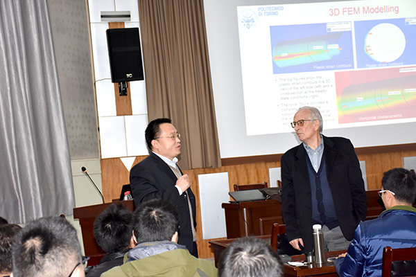 焦玉勇院长、唐志成博士邀请,岩石力学与工程领域国际知名专家、国际岩石力学领域权威期刊《Rock Mechanics and Rock Engineering》主编、意大利都灵理工大学Giovanni Barla教授来校做主题为 “Monitoring and modelling of tunnels and caverns”的学术报告。焦玉勇院长主持了报告会,学院60余名师生聆听了报告。