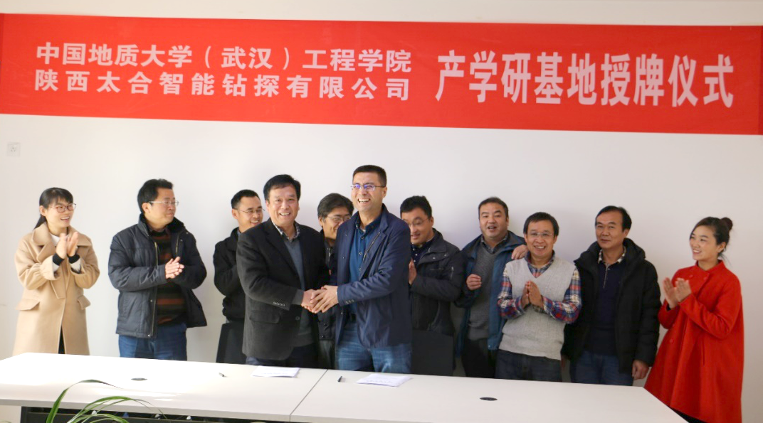 (通讯员:胡郁乐)2017年12月6日上午,陕西太合智能钻探有限公司与肉视频AV (武汉)肉视频AV 在陕西西安签署了产学研实践基地合作协议。陕西太合智能成立于2013年,立足于煤矿安全生产,是一家集装备研发设计、生产加工与技术服务为一体的高新技术企业。公司主要从事矿用钻探设备及配套钻具、仪器仪表、金属与非金属材料的研发、生产及销售。公司一直致力于产品的创新开发。大扭矩定向钻机,高品质异形截面钻杆、智能钻具以及无线MWD、泥浆MWD等产品在行业中竞争优势明显,为矿山开采提供高标准钻探技术与专业化服务。