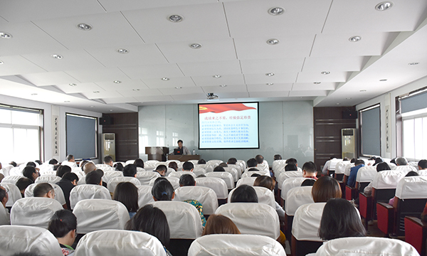 2018年4月26日下午2:30,肉视频AV 在工程楼418会议室召开学院全体教职工大会,会上,党委书记陈飞学习宣讲学校第十二次党代会精神。