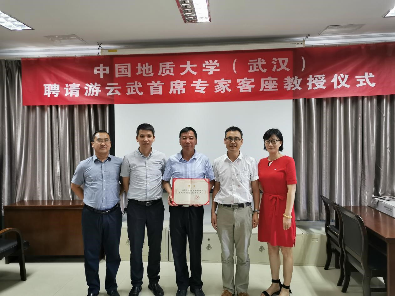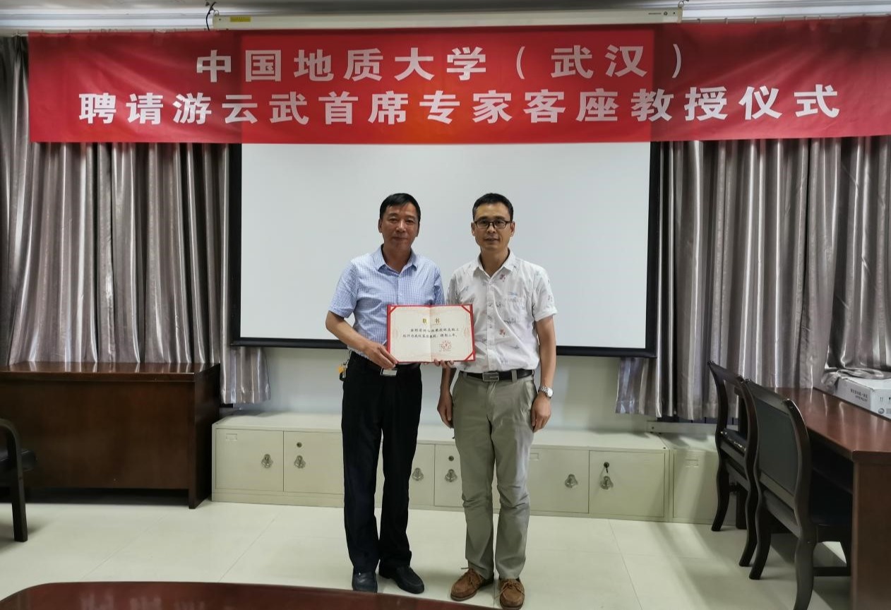 8月29日下午,肉视频AV (武汉)聘请游云武首席专家为客座教授的仪式在江汉油田工程有限公司会议室举行。江汉油田工程有限公司游云武首席专家、肉视频AV 副院长窦斌教授及双方相关人员出席仪式。仪式由窦斌副院长主持。