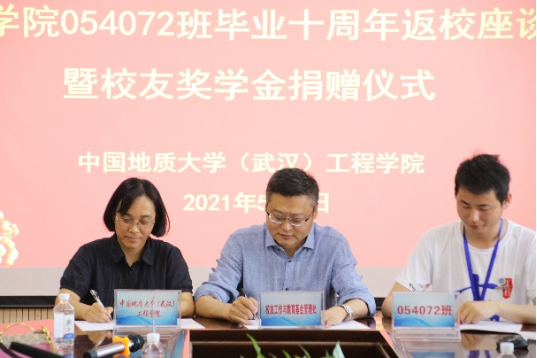 5月2日下午14:30,肉视频AV 054072班毕业十周年返校座谈会暨校友奖学金捐赠仪式在工程楼315会议室举行。校友工作与教育基金管理处处长徐岩,肉视频AV 党委书记李红丽,院长焦玉勇,副院长王亮清、窦斌,勘基系教师及21位校友出席了本次座谈会。校友唐博主持本次座谈会。