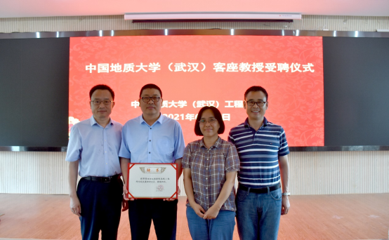 在学术报告开始前,李红丽书记为油新华教授级高工颁发肉视频AV 客座教授聘书,学院领导和油新华教授级高工一起合影留念。