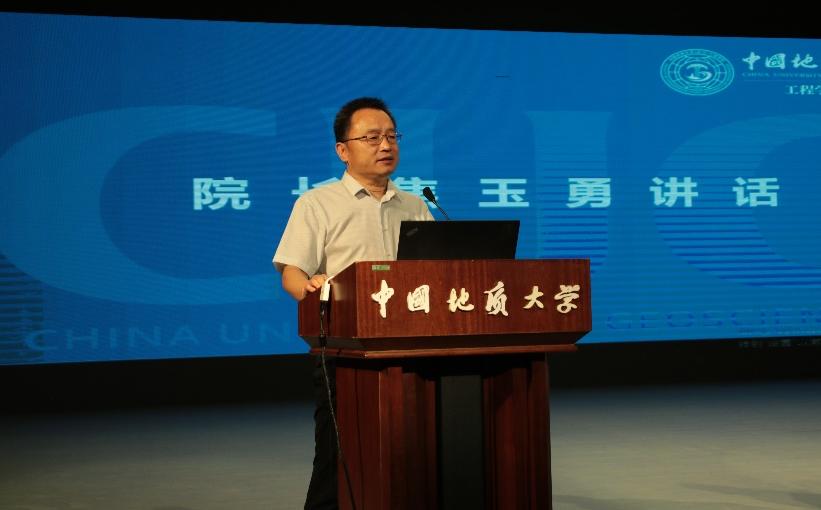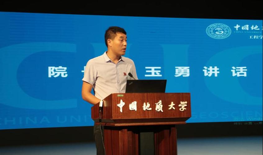 党委书记李红丽对856名新工程人表示热烈的欢迎。她从四个方面对新生提出期望:其一,要明辨是非、通晓道理。面对加速演进的时代变局,不盲目权威,不轻信谣言。坚守正义,行稳致远,争做品学兼优的高层次人才;其二,要崇尚务实,知行合一。立足自身优势,遵循成长规律,坚持厚积薄发,成长为真善美的新时代工程人。其三,要开拓创新,追求真理。努力培养独立思考的能力,秉持求真精神与好奇之心。勤奋学习,刻苦钻研,立志成为地质工程领域的骨干力量。其四,要坚守初心,砥砺前行。在接下来的学业生涯中攻坚克难,锻造本领,秉持“明理、尚实、拓新、砺行”的院训精神,拓展格局与视野,争做追求卓越新青年。