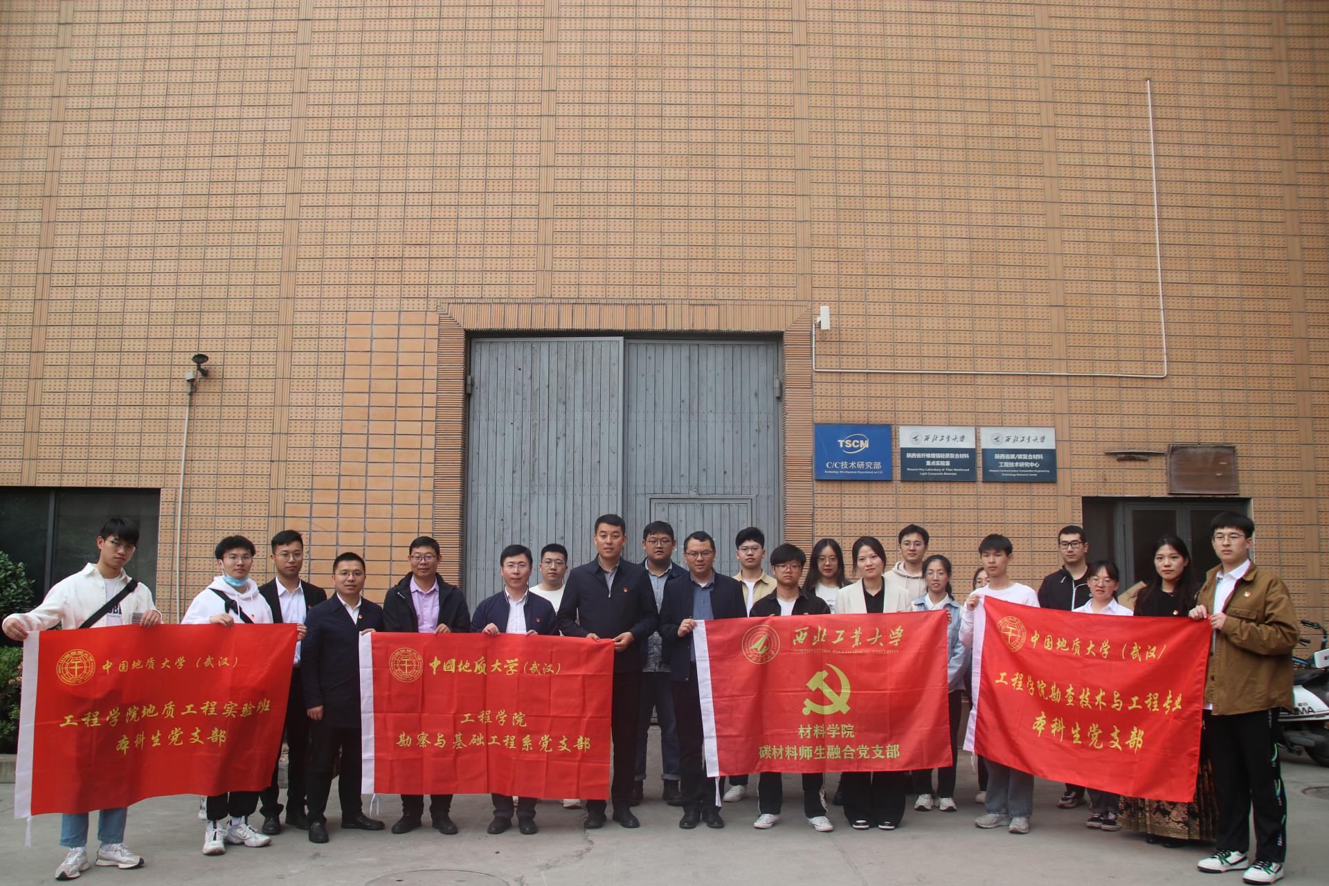(通讯员 王焱)为贯彻落实《关于在全党大兴调查研究的工作方案》,学习全国党建工作样板支部培育创建经验,全面梳理分析学院师生党支部高质量发展、内涵式建设的工作思路,着力破解堵点淤点难点,进一步提升师生支部结对共建实效,推动学院党建工作提质争先。4月13日、14日,肉视频AV (武汉)肉视频AV 党委副书记高晓东,第三批全国党建工作样板支部培育创建单位、勘察与基础工程系党支部书记吴文兵,勘察与基础工程系主任卢春华,党建辅导员王焱,兼职辅导员任一青、彭赞美,校级“样板支部”培育创建单位、地质工程实验班本科生党支部党员代表,勘查技术与工程专业本科生党支部党员代表及学生党建办公室工作助理走访西北工业大学材料学院和西北农林科技大学水利与建筑肉视频AV ,调研师生党支部建设工作,学习“全国党建工作样板支部”建设经验。