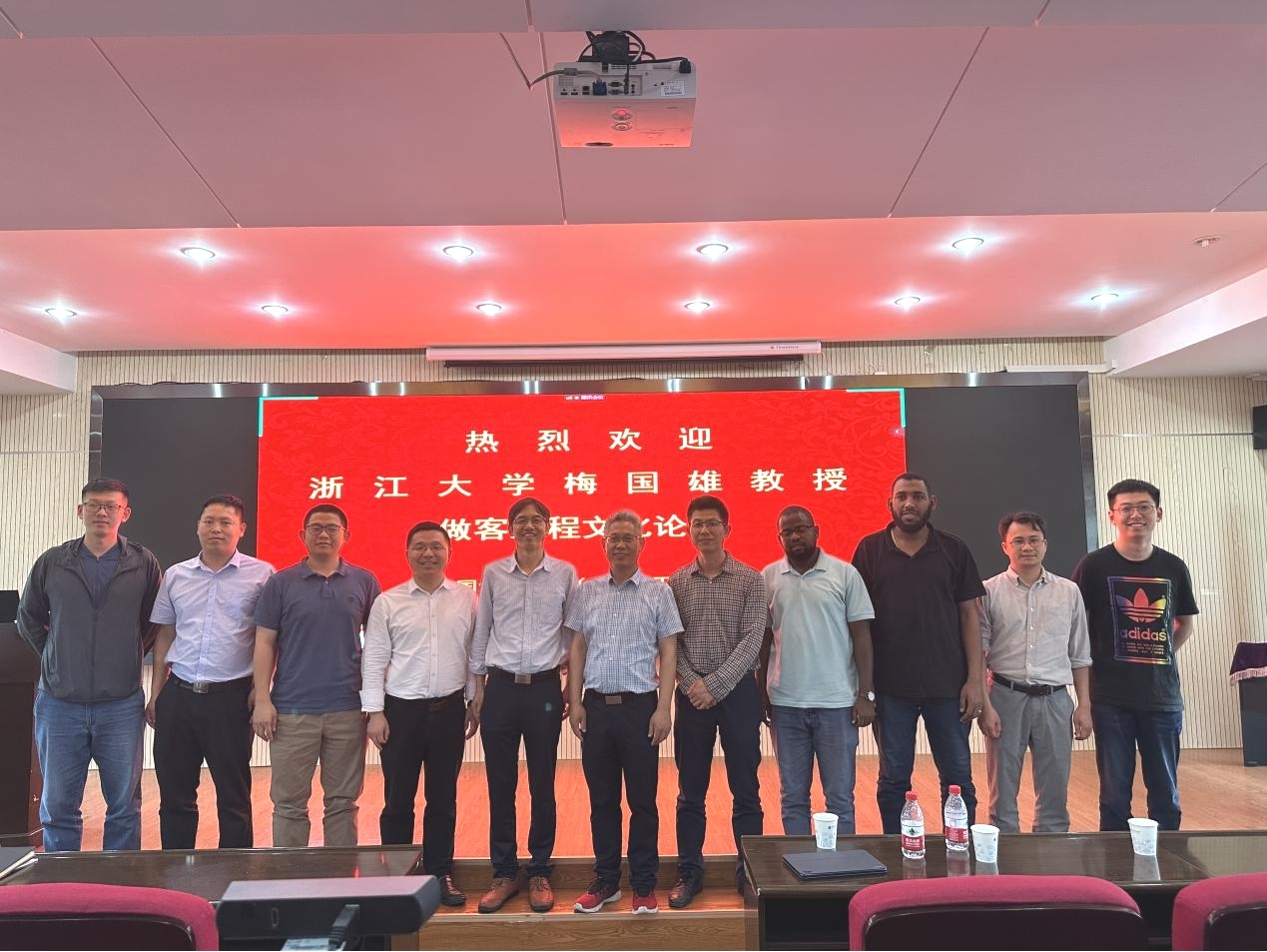 (通讯员 李立辰 黄静)2023年5月16日下午,应肉视频AV 蒋国盛教授和吴文兵教授的邀请,浙江大学梅国雄教授做客工程文化论坛。吴文兵教授主持了本次报告会,100余名师生参加了本次活动。