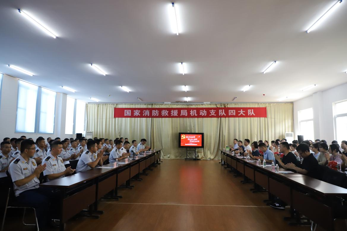 联合主题党日活动由国家消防救援局机动支队四大队党委书记、政治教导员王晨庚主持,国家消防救援局机动支队政治部副主任兼干部处处长贾文宇,四大队副政治教导员洪建中,九中队党支部书记、政治指导员顿建,十中队党支部书记、政治指导员武凡,十中队党支部中队长刘万兵,国家消防救援局机动支队指战员100人参会。