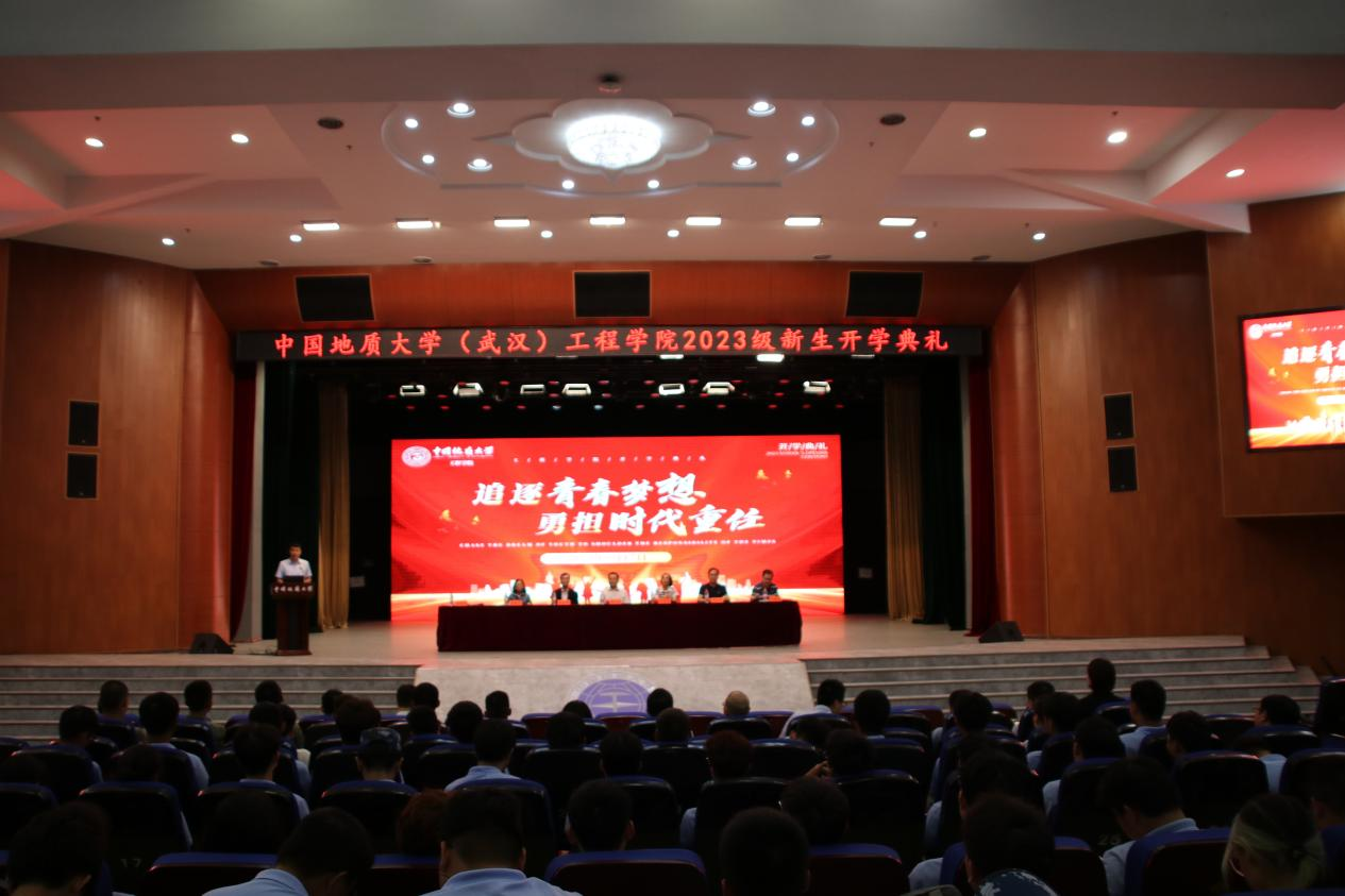 (通讯员 贾彦平)莘莘学子汇江城,工程栋梁破凌云。9月17日下午,肉视频AV (武汉)肉视频AV 2023级新生开学典礼在南望山校区弘毅堂隆重举行。学院党委书记李红丽,党委副书记、院长焦玉勇,党委副书记、纪委书记高晓东,副院长王亮清、窦斌、倪晓阳、章广成,各系教工党支部书记、系主任,学院研究生导师代表,2023级本科生班主任,全体辅导员、军训教官代表以及506名本科生、298名硕士生、56名博士生参加典礼。中建科工旗下中建钢构股份有限公司首席专家、教授级高级工程师、“全国道德模范”、“全国五一劳动奖章”获得者陆建新,肉视频AV 2000级土木工程专业校友、湖北道泽勘测设计院有限公司总工程师谢昭宇两位嘉宾受邀出席。高晓东主持典礼。