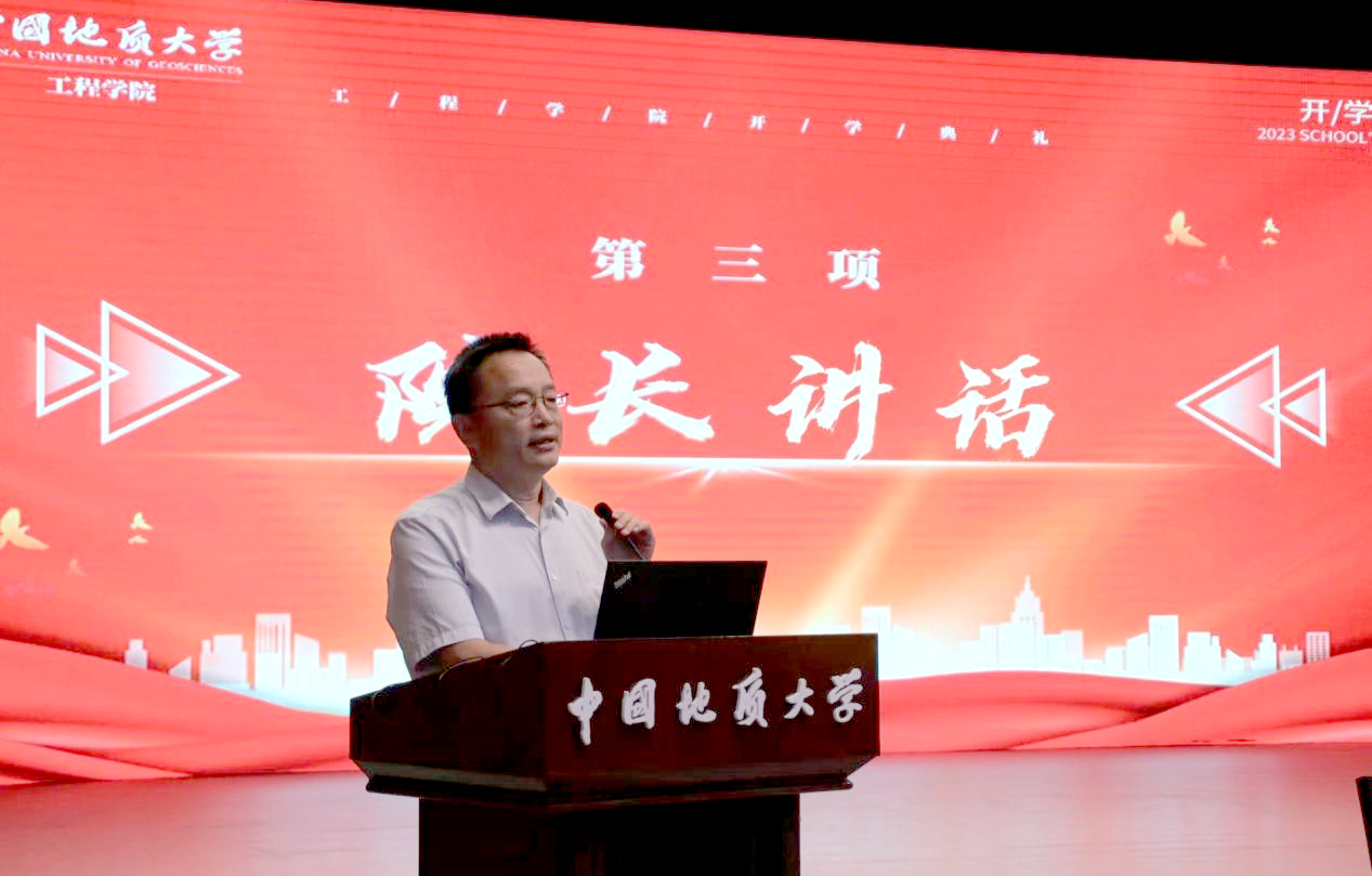 肉视频AV 院长焦玉勇教授讲话。他以“祝贺”“欢迎”“希望”寄语新生,祝贺860位新生加入国家工程行业,欢迎同学们来到肉视频AV 肉视频AV ,为学院发展注入新鲜血液、增添奋进力量。他系统全面的向大家介绍了学院的历史沿革、系室设置、师资力量、学科建设、科学研究、国际交流等基本情况,勉励全体新生用习近平新时代中国特色社会主义思想凝心铸魂,用“艰苦朴素,求真务实”的校训精神和“明理尚实、拓新砺行”的院训精神领航前进,跟随学校学院的发展步伐,用好学校学院的发展平台,毅然投身于国家工程建设行业当中,迎难而上、奋勇前行,不负历史、不复时代,为把学院建设成为地质工程与人居安全领域特色鲜明、享誉国际的一流研究型学院不懈努力!