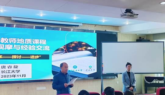 (通讯员 陈婵)2023年11月14日下午,应肉视频AV 王亮清副院长的邀请,长江大学地球科学学院、全国大学青年教师地质课程教学比赛特等奖获得者唐睿旋博士来院讲公开示范课并作教学比赛经验交流报告,报告会由章广成副院长主持,肉视频AV 30多位青年教师参加了此次报告会。