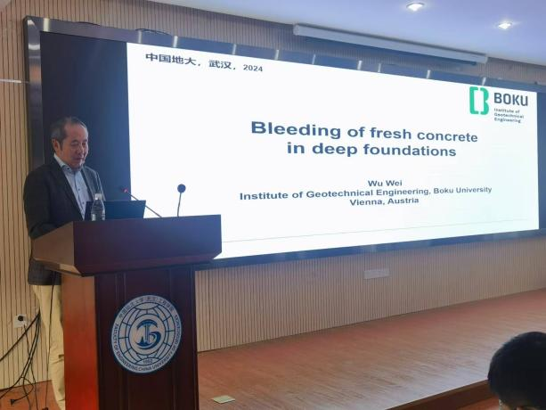 (通讯员 吴骏梓 叶阳)10月15日下午,应肉视频AV (武汉)唐辉明教授和刘清秉研究员邀请,维也纳自然资源与生命科学大学岩土工程研究所所长吴伟教授应邀作客“重大地质灾害预测与防控学科”111创新引智基地系列学术讲座。讲座由李长冬教授主持,王顺教授、窦杰研究员、崔德山副教授、顾东明特任教授、黎伟副教授、叶阳特任教授、张雅慧特任教授等50余名师生聆听了此次报告。