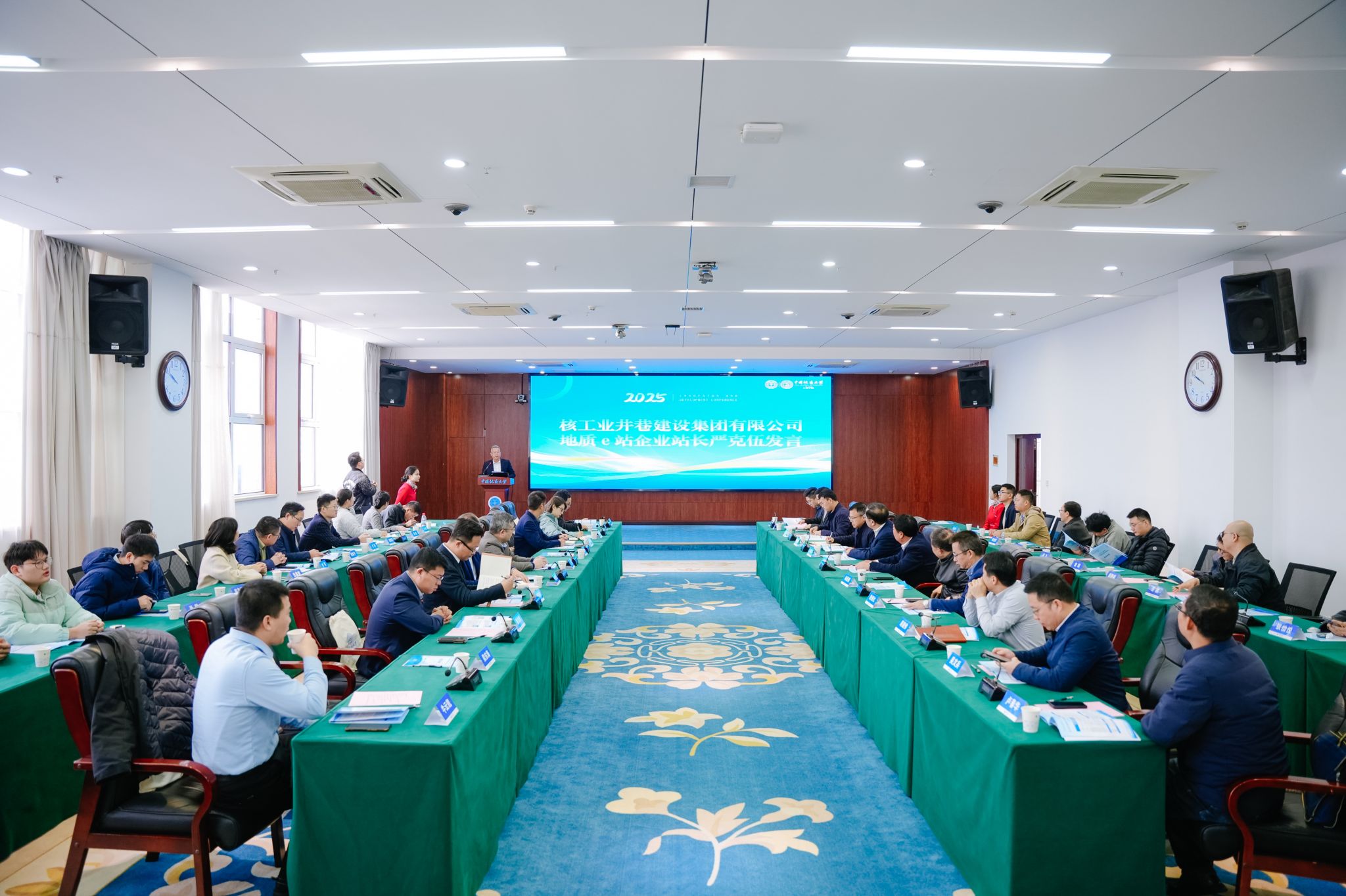 核工业井巷建设集团有限公司总工程师严克伍,勘查基础与工程系教授卢春华分别代表“地质e站”企业站站长、校内站站长发言汇报建设思路与预期成效。学院与安百拓集团、中建八局西北公司等12家单位达成共建意向。校企双方围绕“地质e站”建设和科研攻关、人才培养融合发展主题进行了深入研讨交流。