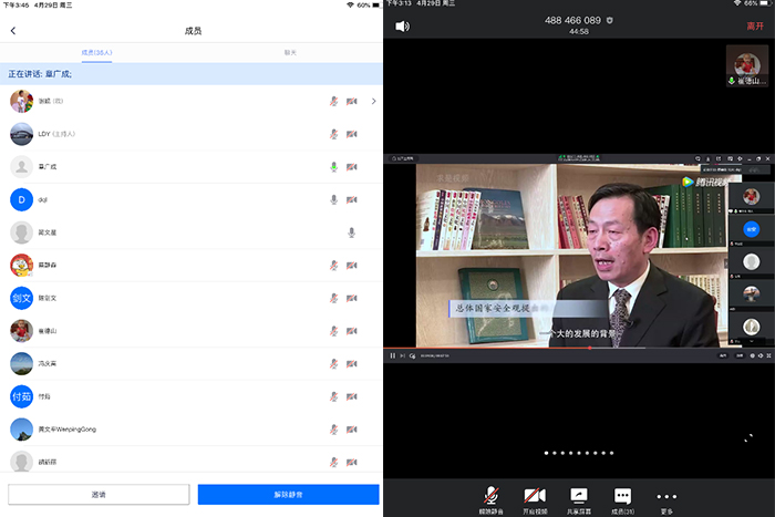 20204月29日下午,工程地质与岩土工程系党支部利用腾讯会议软件开展了主题党日活动,共有35名支部成员参加。本期主题党日活动的主题是:(1)学习“国家总体安全观”;(2)学习中共中央《关于加强和改进新时代师德师风建设》。活动由党支部副书记文新主持,副院长王亮清等工岩系全体党员参加了主题党日活动