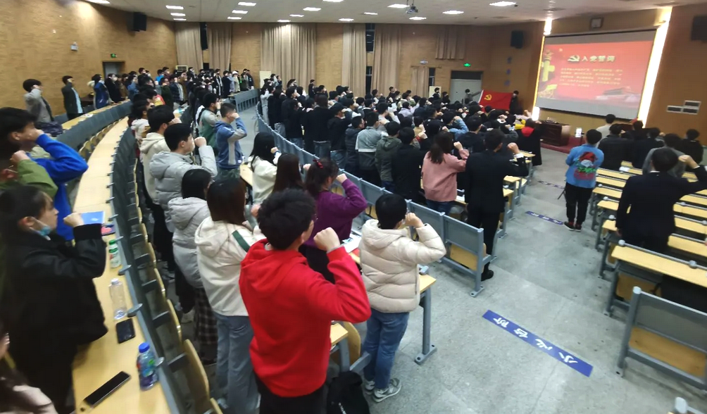 2020年学院共发展预备党员167人,肉视频AV 分党校秘书王焱同志带领同志们进行集体宣誓。