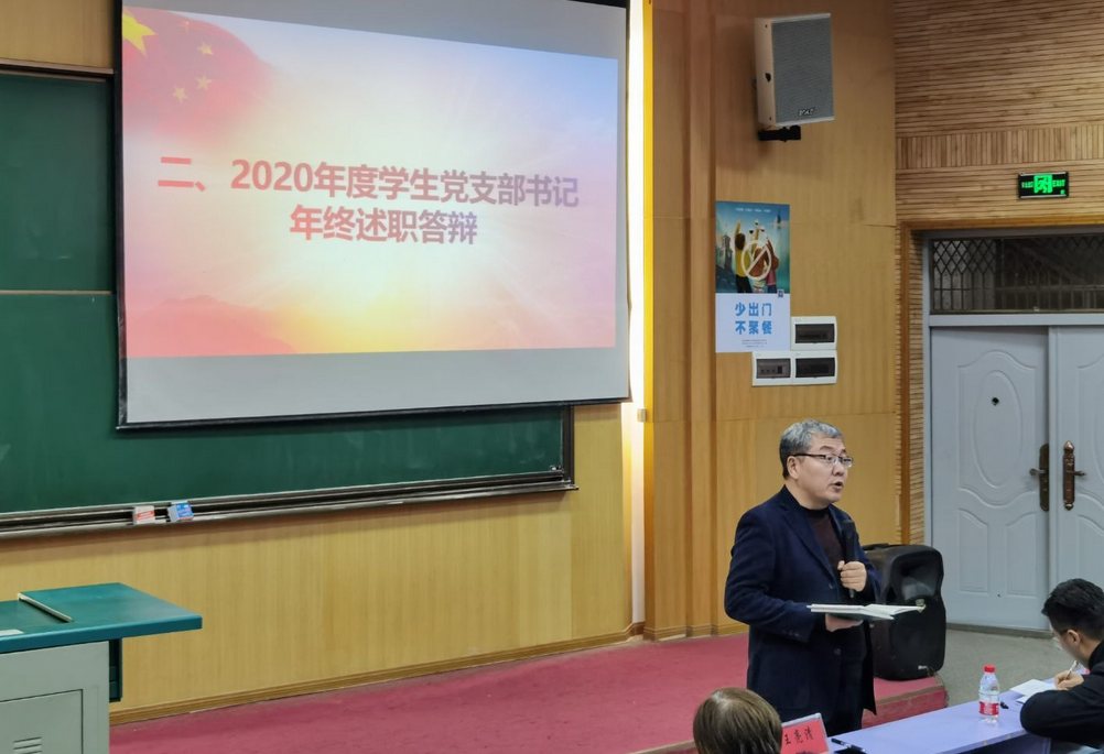首先各党支部书记做2020年度学生党支部工作总结汇报。报告内容大致从支部建设、党员教育发展、特色活动、不足和展望四个方面进行陈述。在支部建设中,支部书记鼓励支部成员讲党课,积极开展支部组织生活会,并进行党员批评与自我批评等。在党员教育发展中,严谨认真。在疫情形势下,通过线上微党课、学习强国、青年大学习等手段开展党员教育,贯彻落实“以党建带动团建,班团一体化建设”,让支部成员更好将党建任务落实,并常与支部成员谈话谈心以了解他们的情况等。在各党支部的特色工作中,出现了一些新颖的活动:“冬天的第一本书”,参观“人民至上,生命至上”主题抗疫展览,学习不惧困难、团结一致的精神,开展个人演讲等。最后,各党支部提出了现有的不足与在2021年里的改进措施。