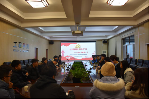 12月31日中午12:30,肉视频AV 院直属党支部与肉视频AV 地质工程实验班本科生党支部在工程楼315会议室举行了结对领航“寒冬送暖迎新年”活动,出席活动的有李红丽书记、张美霞老师、杨冠青老师、陈婵老师、黄静老师及地质工程实验班的学生代表。