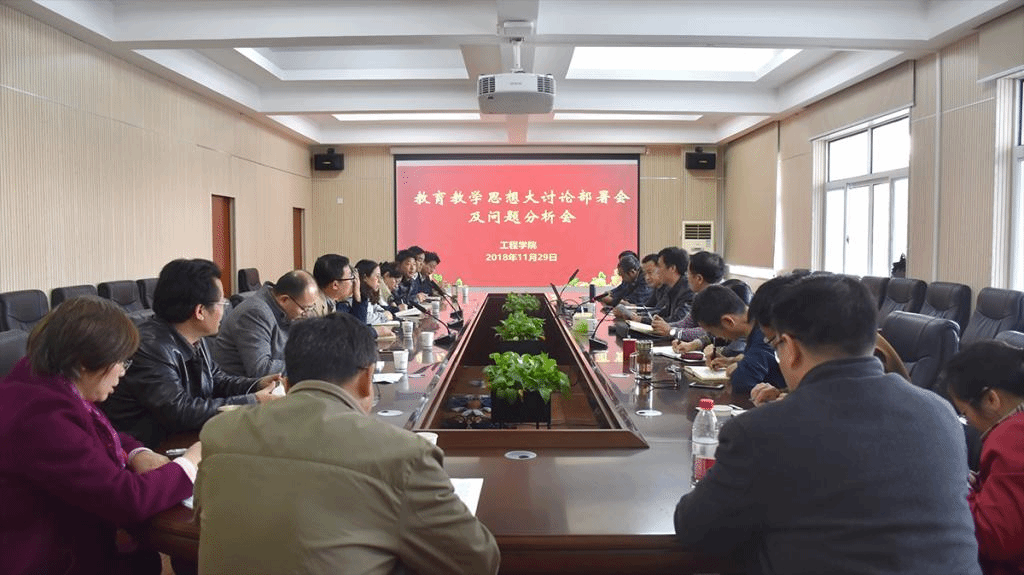 肉视频AV 于2018年11月29日下午14:00在工程楼315会议室,召开了“肉视频AV 教育教学思想大讨论部署会及问题分析会”。参加会议的有学院党政领导和各系主任、支部书记及学科带头人。会议由党委书记陈飞主持,此次会议目的是提高认识,统一思想,落实行动。