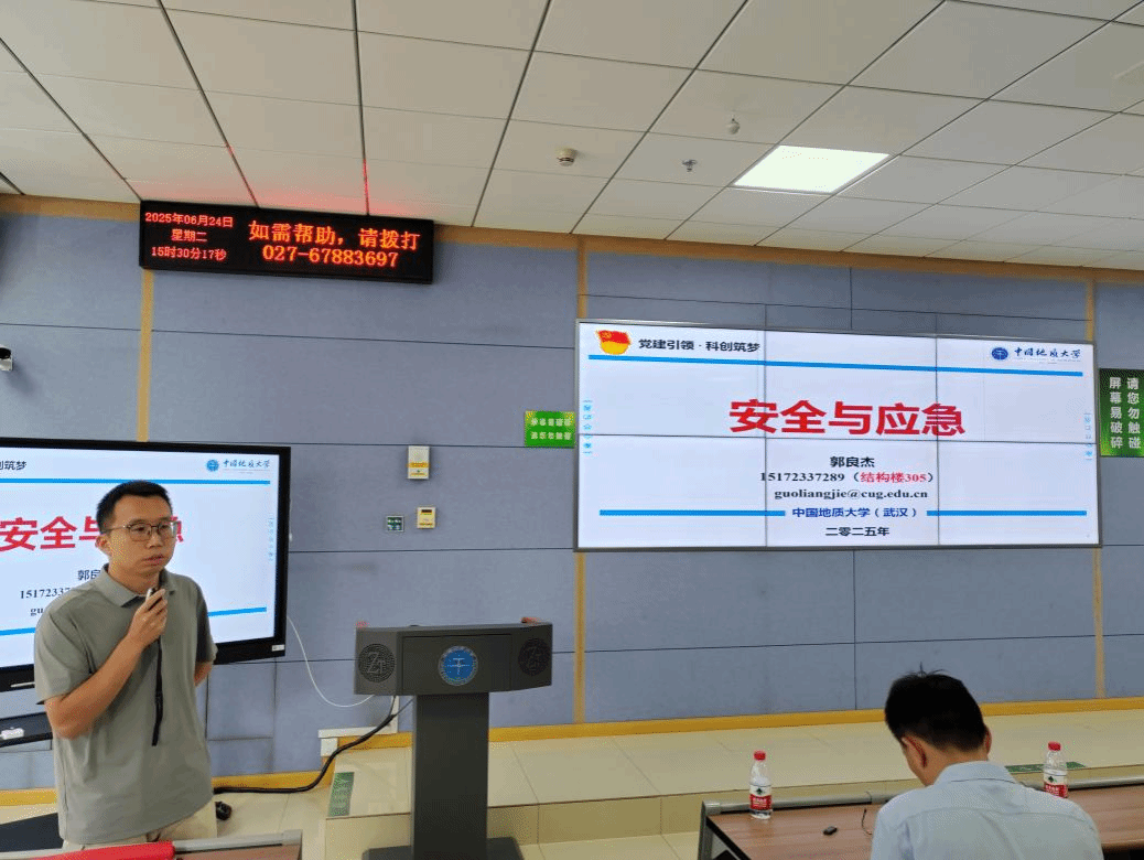 随后,郭良杰副研究员以“生动详实的典型案例”以及“系统详细的专业知识”,层层深入地解析“安全工程”与“应急技术与管理”的专业内涵与外延。既夯实了同学们对专业基础的理解,也为大家在未来专业分流时的方向选择提供了清晰指引,让2024级本科生对专业前景有了更具象、更深刻的认知。此外,他也从发展历程、社团特色、资源支持以及实践育人等方面介绍了安全工程系学术科技类社团——肉视频AV (武汉)“地心守护”社团。他提到,社团作为科创与实践的“孵化站”,鼓励学生通过社团活动积累实践经验、锤炼过硬本领,将专业知识转化为解决实际问题的能力。